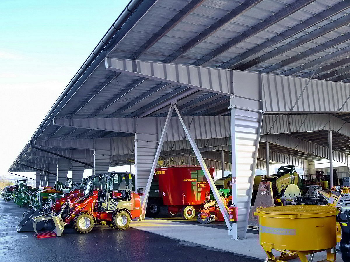 Überdachung für Landmaschinen, Aschbach-Markt voriges matches nächstes of Ein kostenloses Angebot erhalten Fakten Wandprofil BPE 18 Dachprofil Super 40 Art der Nutzung Büros und Verkaufshallen Länge 56 m Breite 36 m Höhe 5 m Fläche 2016 m² Isoliert Nein Projektdaten Projektnummer 153053 Land Österreich Gemeinde Aschbach-Markt Drucken